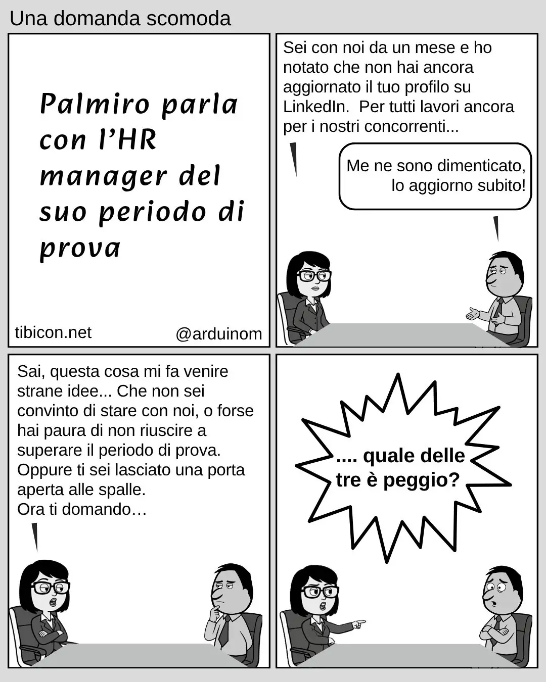 Una bella mina sotto il nascente rapporto con la nuova azienda: proprio come accade nella vignetta.